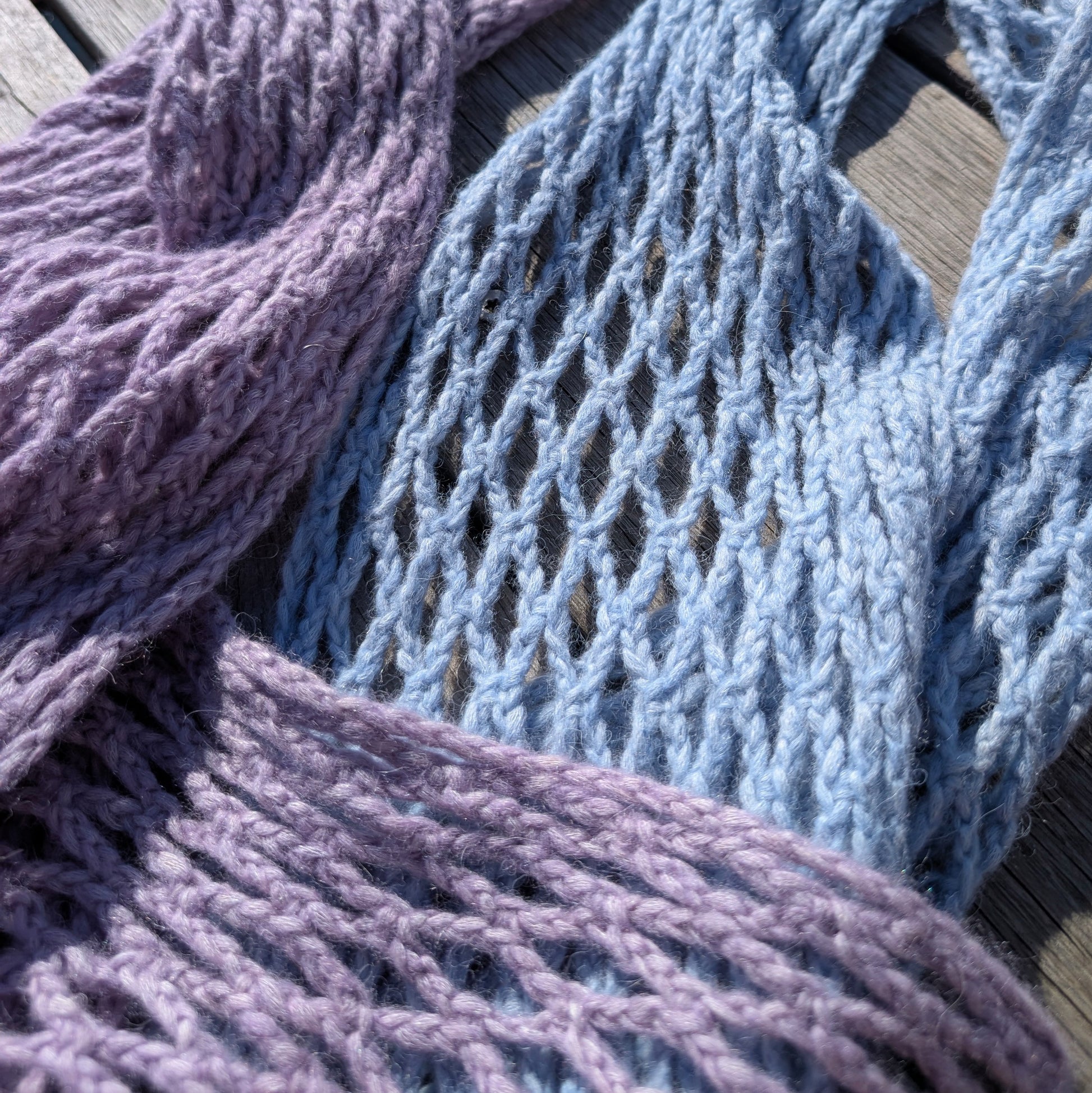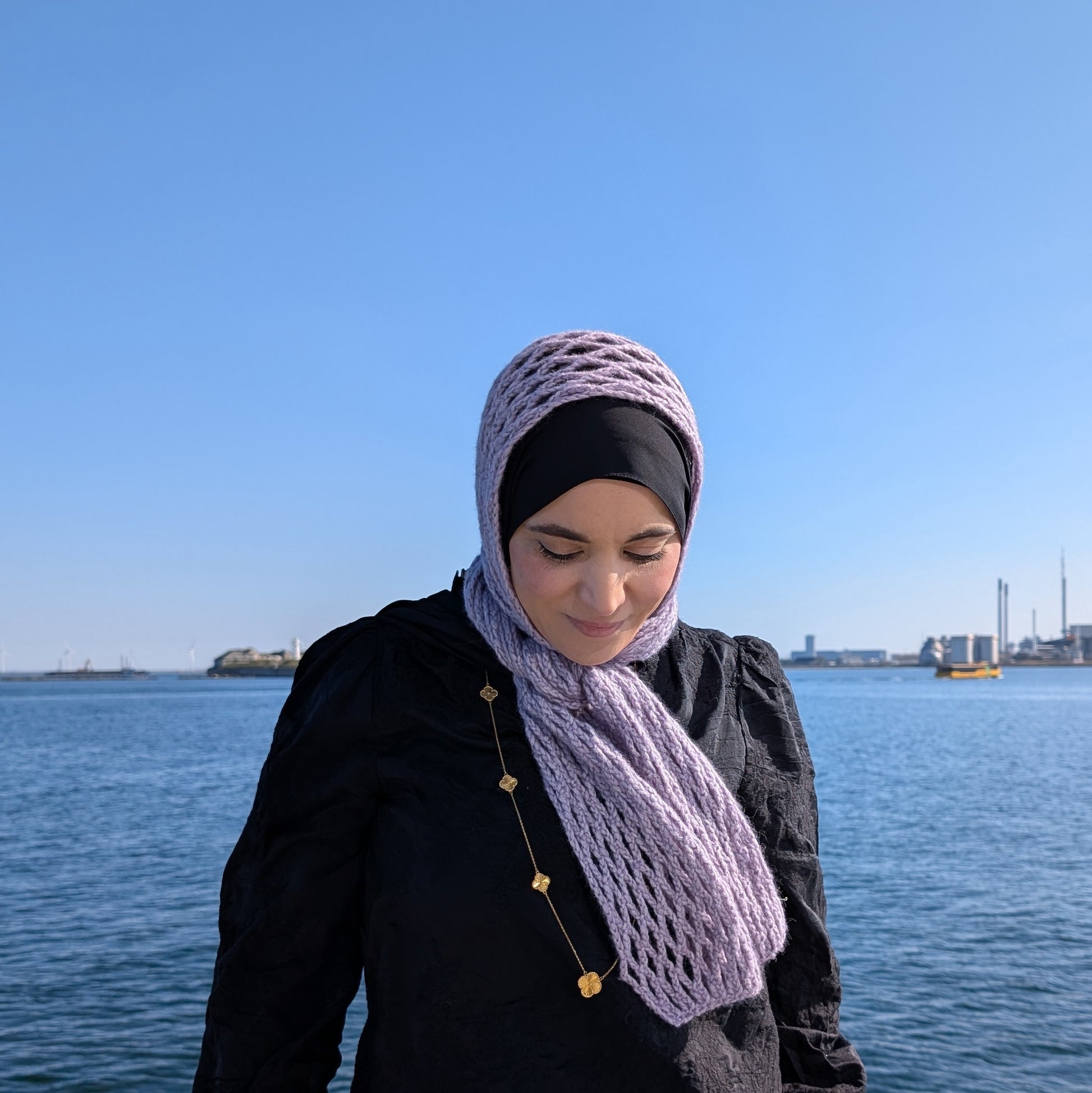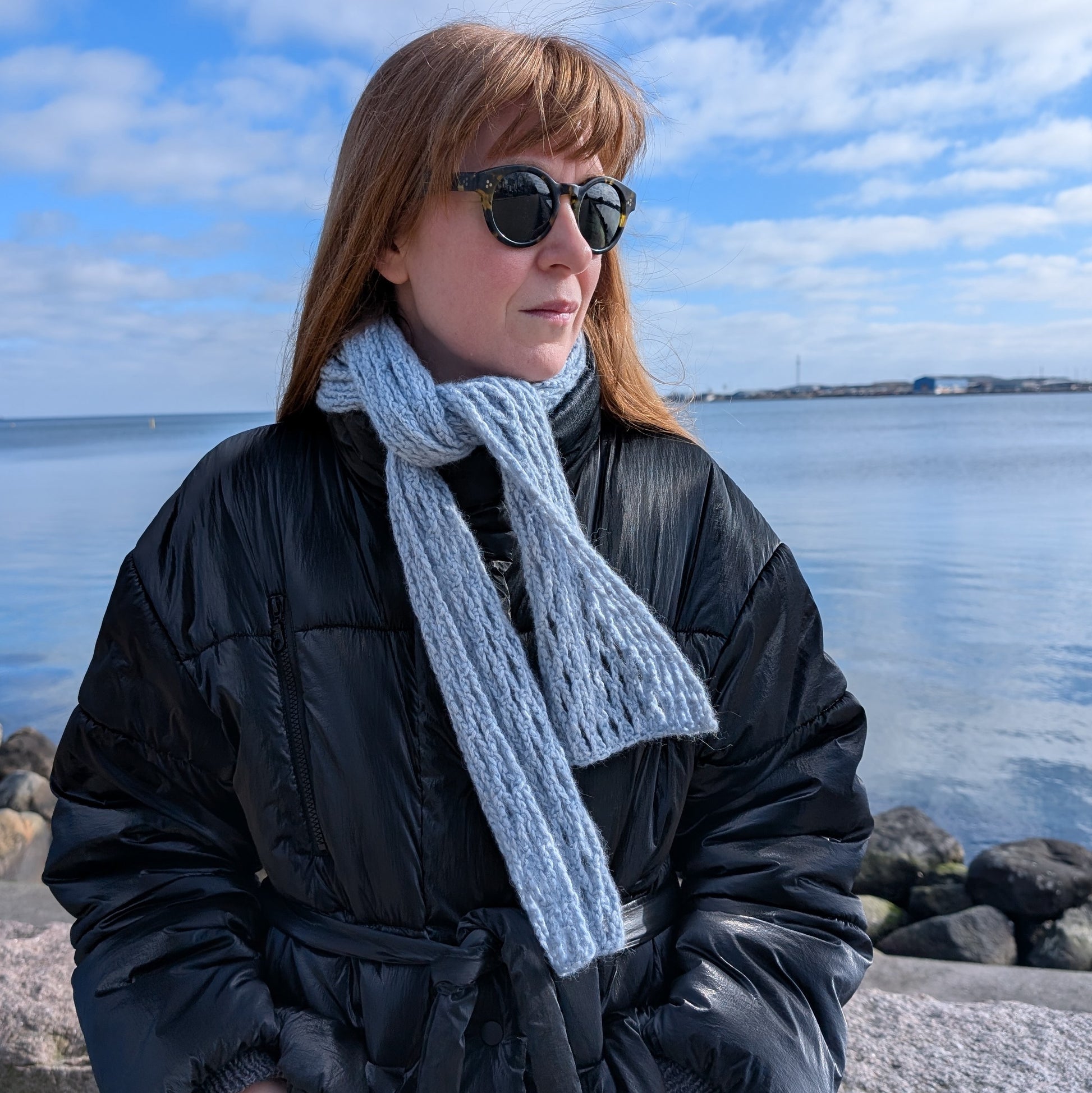 The Holey Hood is a light scarf crocheted as a lattice to function both as a scarf with the lattice relaxed/flat and as a hooded scarf with the lattice stretched out/opened around the head. The scarf has a retro vibe with the lattice pattern and the narrow drape. If you wish for the hood to stays very securely in place, you can either fasten it with a pin or make it wider by adding more rows. The pattern is beginner friendly and include video instructions.